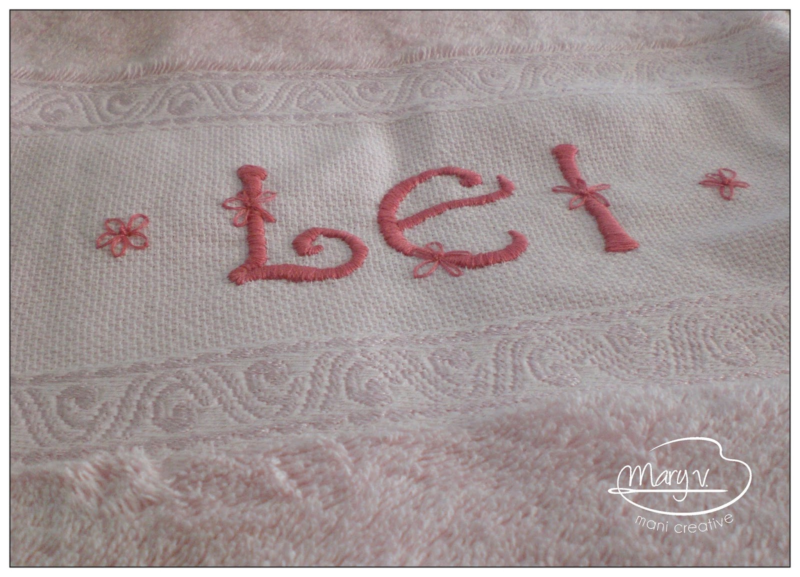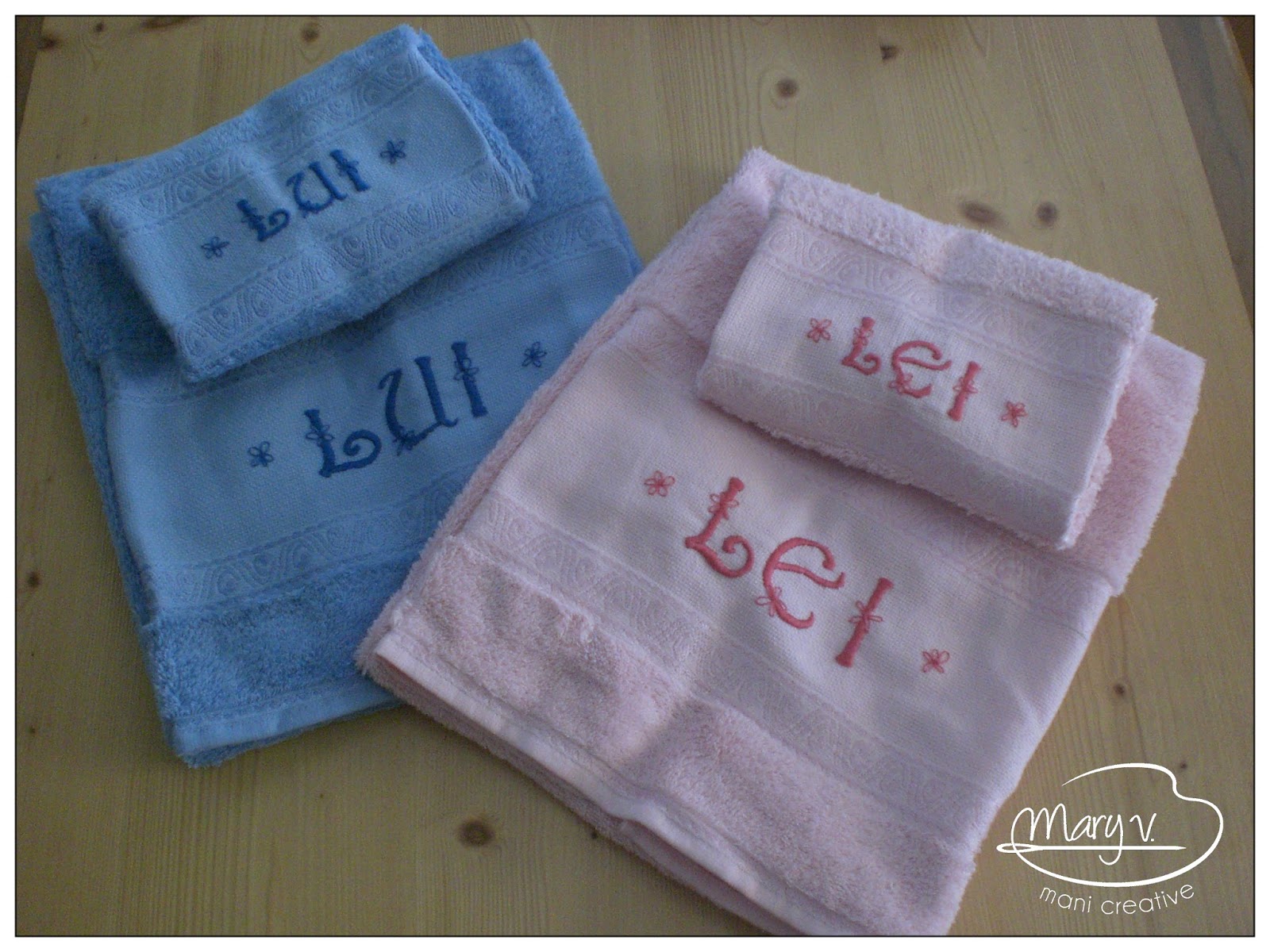 Ho scelto di ricamare una coppia di asciugamani: uno per lei e uno per il suo futuro marito. Niente nomi sopra così possono utilizzarli anche per dei futuri eredi o perchè no metterli a disposizione nel bagno degli ospiti ^_^