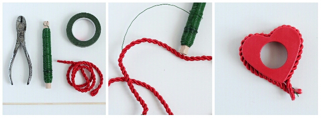 3. Date al cordoncino la forma di un cuore, aiutandovi con uno stampo dei biscotti sarà più facile e diventerà meglio; chiudete con un giro di fil di ferro.