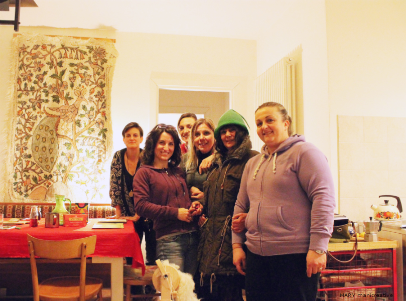 Questo invece è il bellissimo gruppo di lavoro (peccato che manchi Barbara, la nostra insegnante di filatura).