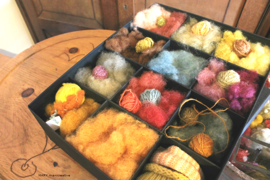 | Campioni di fiocchi e gomitoli di lana colorati con tinture naturali de La Casa di Feltro |