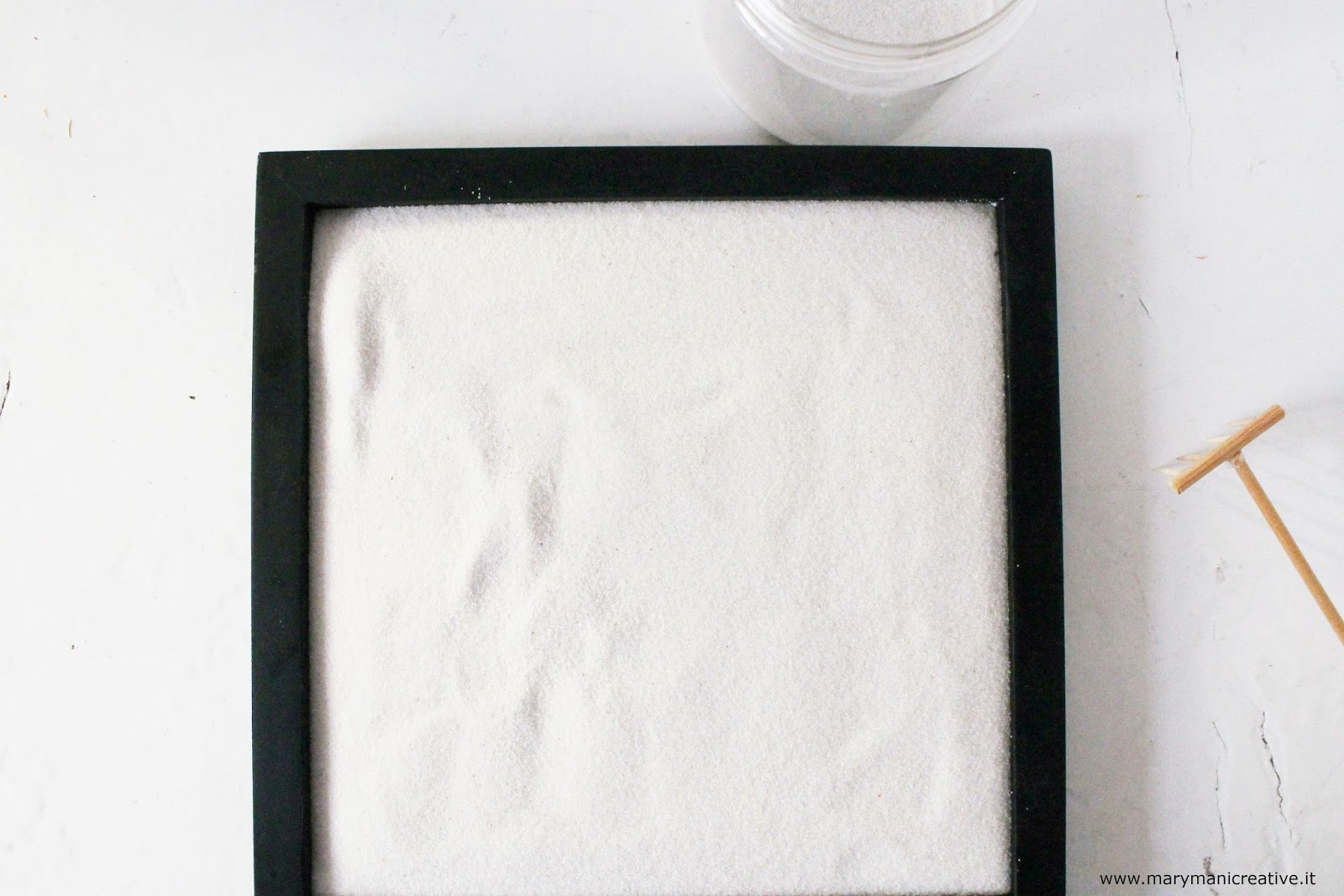Ora riempi il contenitore con la sabbia cercando di uniformarla su tutta la superficie.