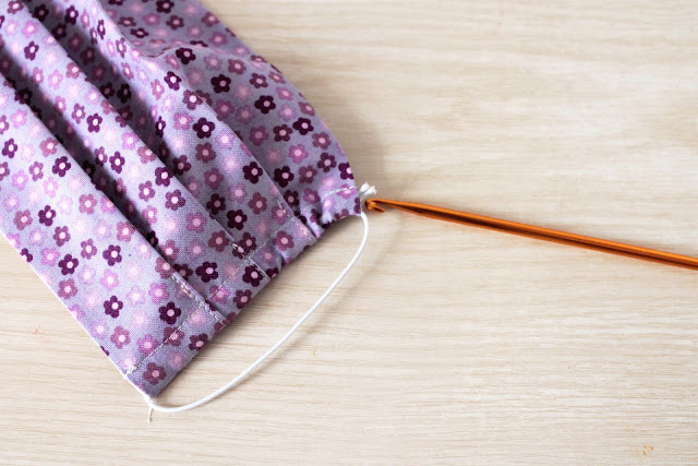 Se non avete l’elastico potete cucire o utilizzare delle fettucce più lunghe da annodare dietro la nuca.