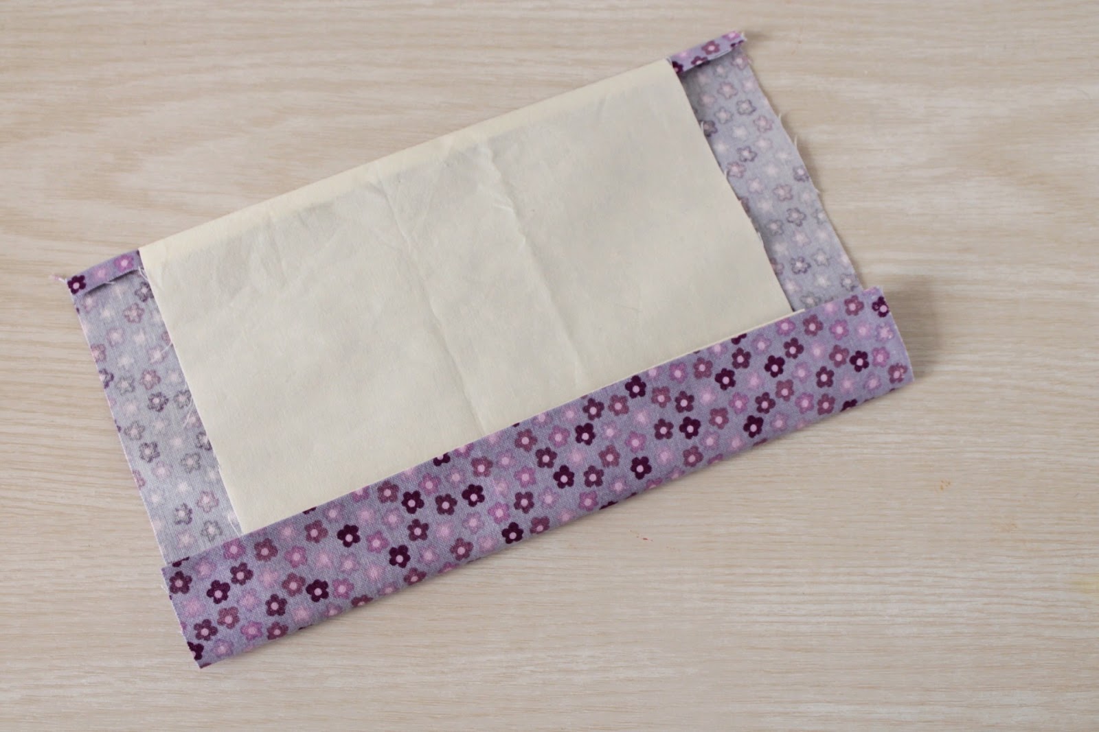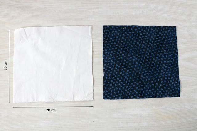 dalla stoffa fantasia tagliare un rettangolo di 19cm x 15cm