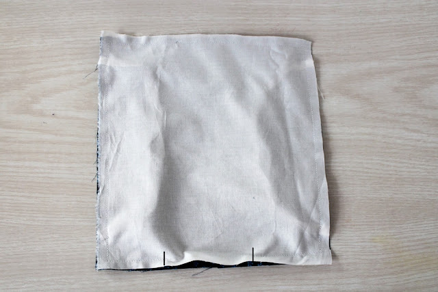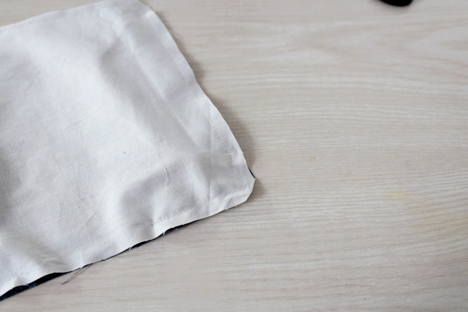 Cucite ad 1 cm lungo tutto il perimetro del rettangolo lasciando un’apertura di circa 5 /6 cm su uno dei lati corti per risvoltare il lavoro.