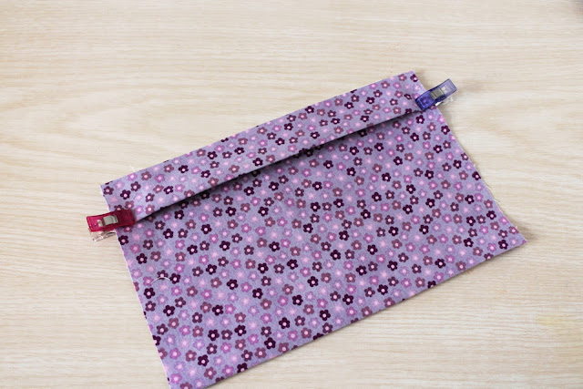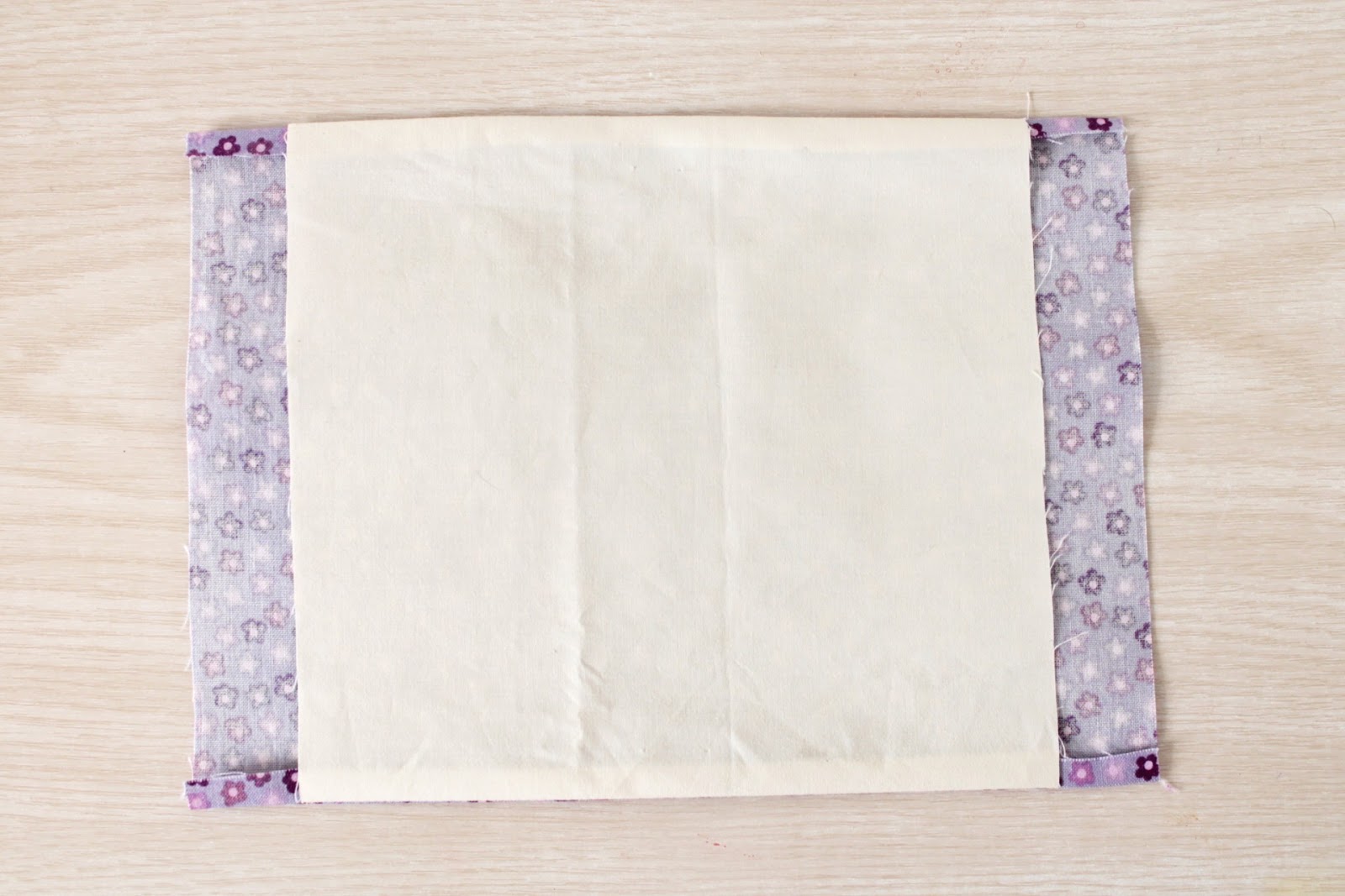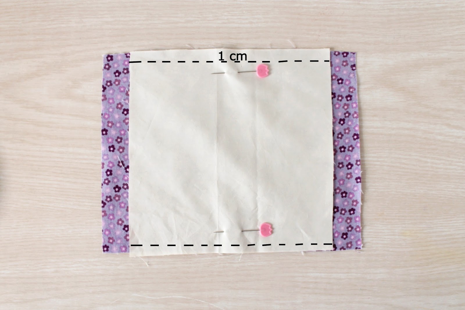 Dalla stoffa fantasia tagliare un rettangolo di 22cm x 17cm.