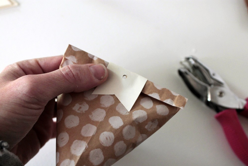 Chiudi la busta passando nel foro il cordoncino e fissandolo con un semplice fiocco.